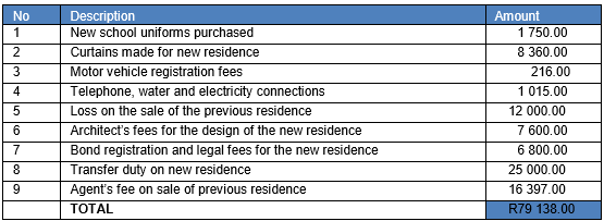 - The employer has already paid for the transfer of the employee’s personal goods and made arrangements for the employee and members of his household to stay in a hotel on the employer’s account for the six months during which the employee’s new house is being built.