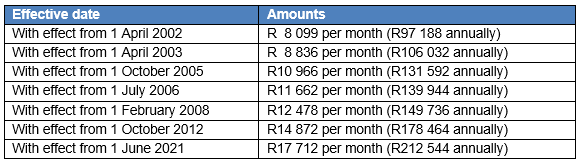 Persons 75 years and older | R171 300 |