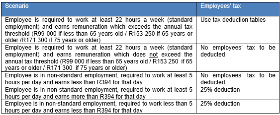 - If employer is not required to register for employees’ tax purposes at SARS;