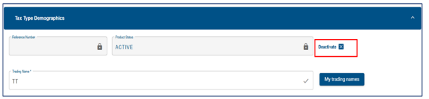 - My Tax Products – The WRAV01 allows users to manage all tax products that are linked to the entity. Click “+” sign to view the following tax products: