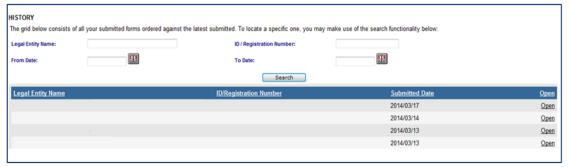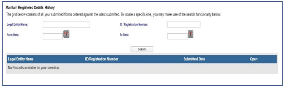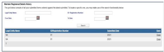 - The “Maintain Registered Details History” menu item will display a history of all submissions of the