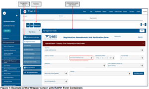 - Form screens are used to complete the actions initiated from the wrapper screen e.g. addition of a new tax registration. Form screens always display containers from the RAV01 form.