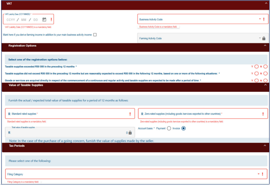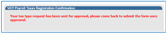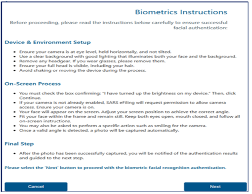 - Registration for VAT and /or Payroll Taxes will require biometric facial recognition authentication on a