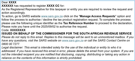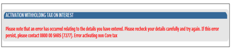 - If the taxpayer information details at SARS do not match the details submitted for the activation request,