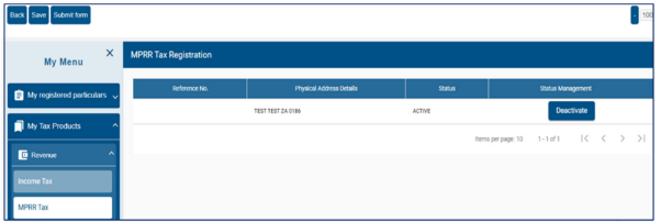 - My Tax Practitioner Details – allows the user to maintain tax practitioner and controlling body details that relate to their professional registration with SARS as a tax practitioner.