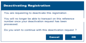 - To deactivate the WTI functionality on eFiling, click on the “Deactivate” button displayed in the above