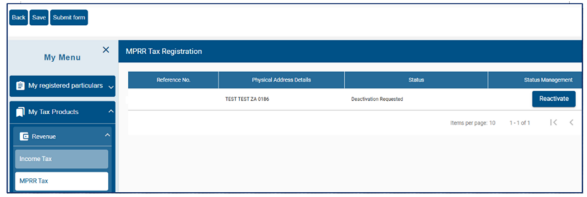 The Registered Representative or Tax Practitioner or Trustee / Administrator must first activate his/her profile before updating the taxpayer’s registered particulars on RAV01.