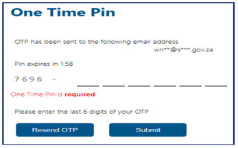- Enter the OTP number to authorise your request and click submit.