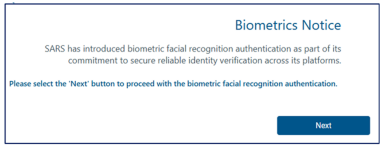 - Click next on the biometrics notice screen to proceed.