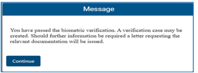 - The following message will be displayed when biometric facial recognition is successful. A verification