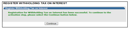 - If all activations are correct, the Register Withholding Tax on Interest page will display. Select “Date of