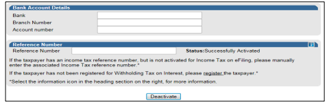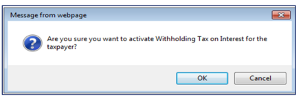 - The “Activation Withholding Tax on Interest” page will display. Check that all taxpayer details