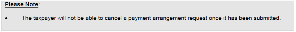 - Where a taxpayer has a pending approval payment arrangement request or an active payment arrangement request for the tax type in question