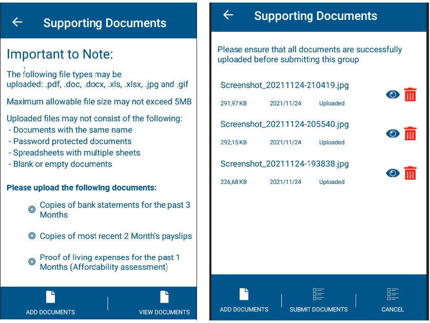 - Tap <VIEW DOCUMENTS> to check if you have uploaded the correct documents.