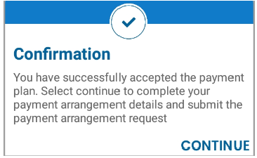 - Tap <Continue> – this option will take you to the simulated payment arrangement plan.