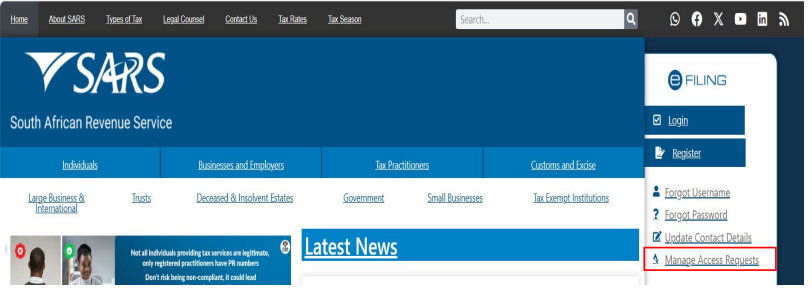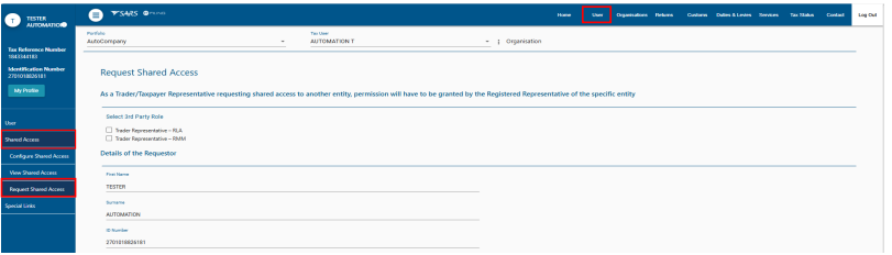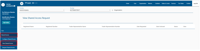 A trader representative who is mandated by a Customs and Excise client can submit a request for shared access through eFiling (refer to Request shared Access paragraph below).