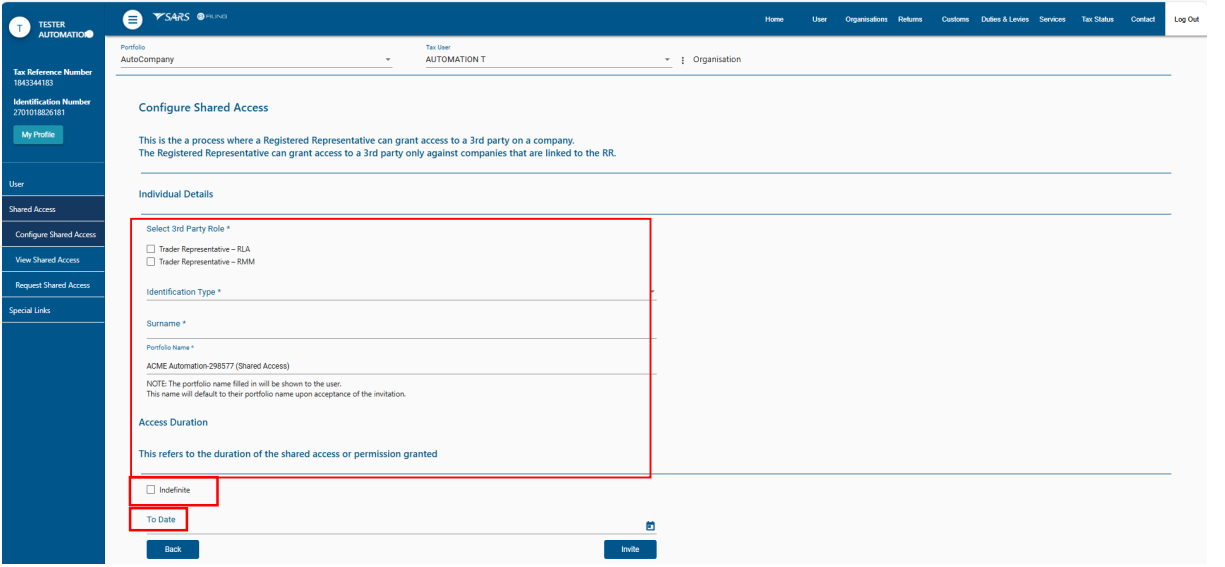- In order to invite another eFiler (trader representative) who has been mandated by a Customs and Excise client to act on his/her behalf, the registered representative of the entity:
