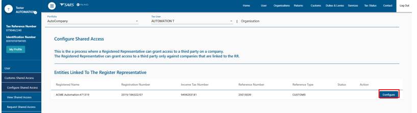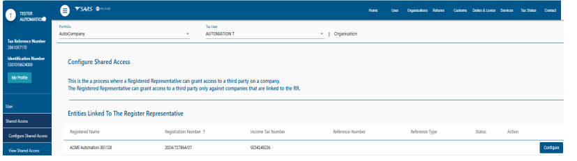 - The system also checks whether the details of the entity’s registered representative is on the SARS main database: