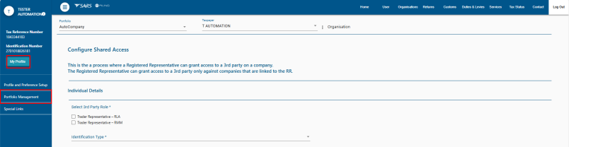 - This function is used by eFilers (trader representatives) to complete the details of the entity they want shared access with.
