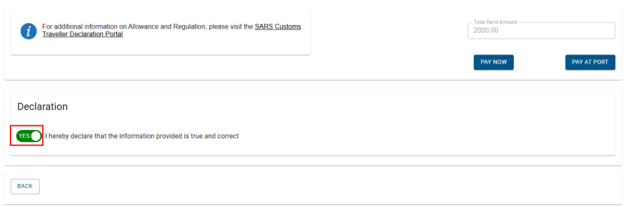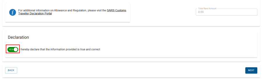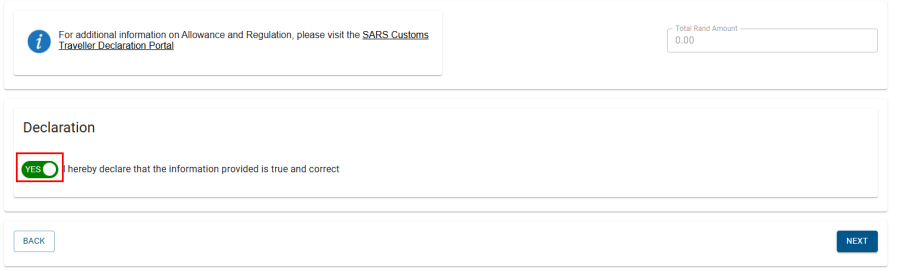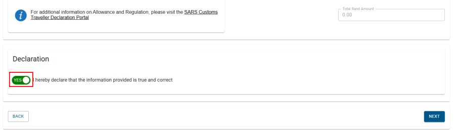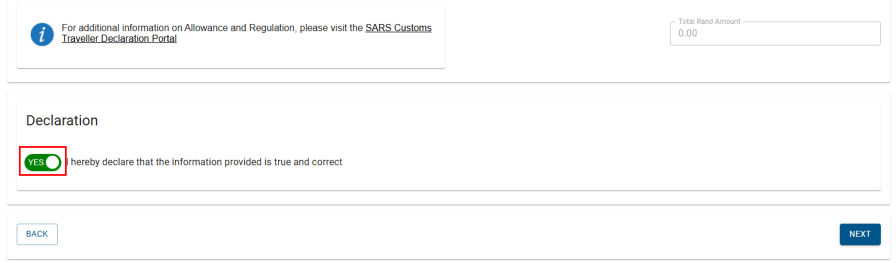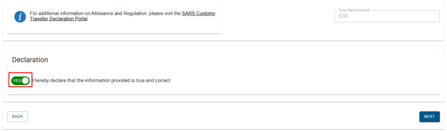- Click the ‘Declaration’ radio button confirming that the information provided is true and correct.