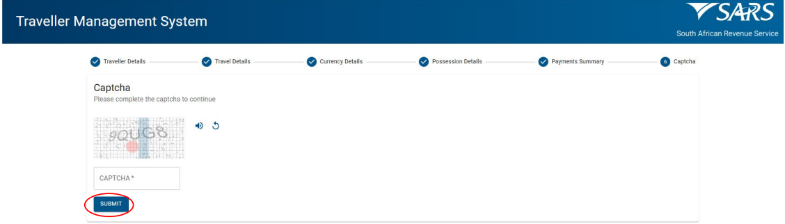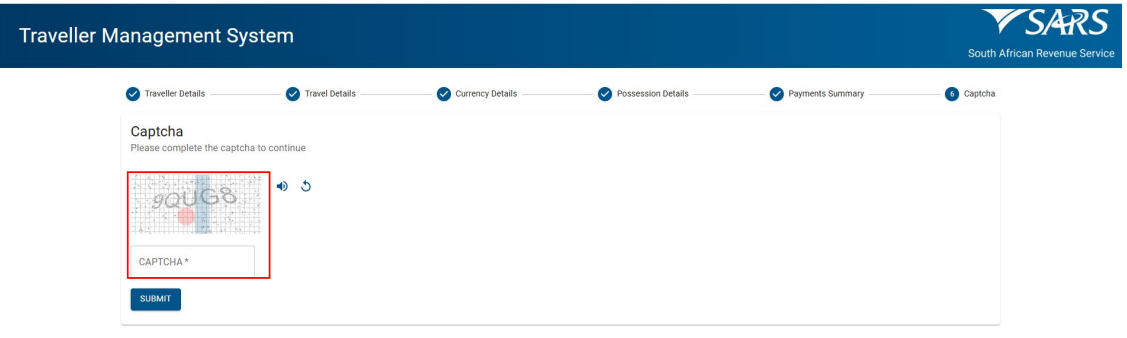 - On the CAPTCHA screen the traveller must insert the displayed CAPTCHA code.