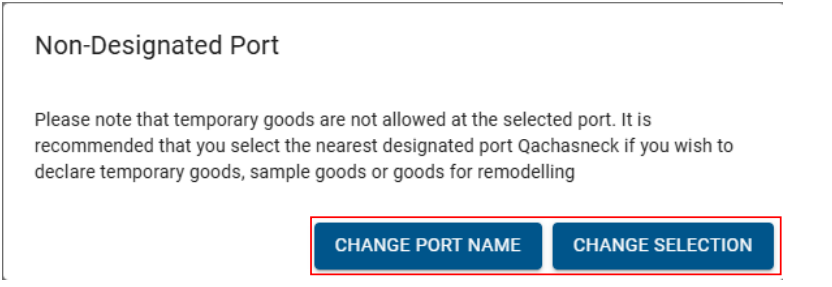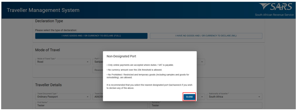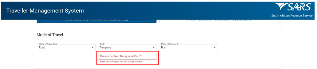 - If the traveller wishes to continue with the use of a non-designated port, he /she must enter ‘Reason for Non-designated Port’.
