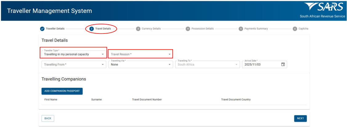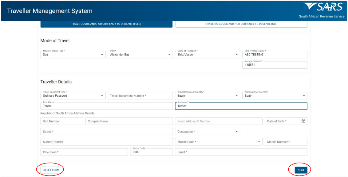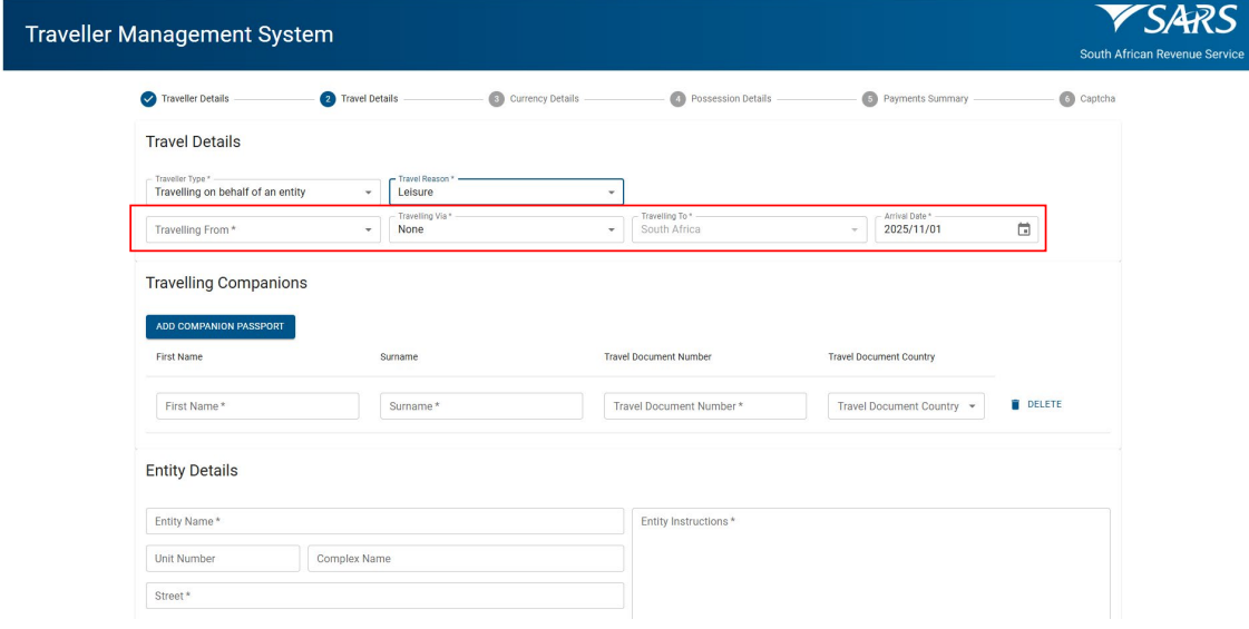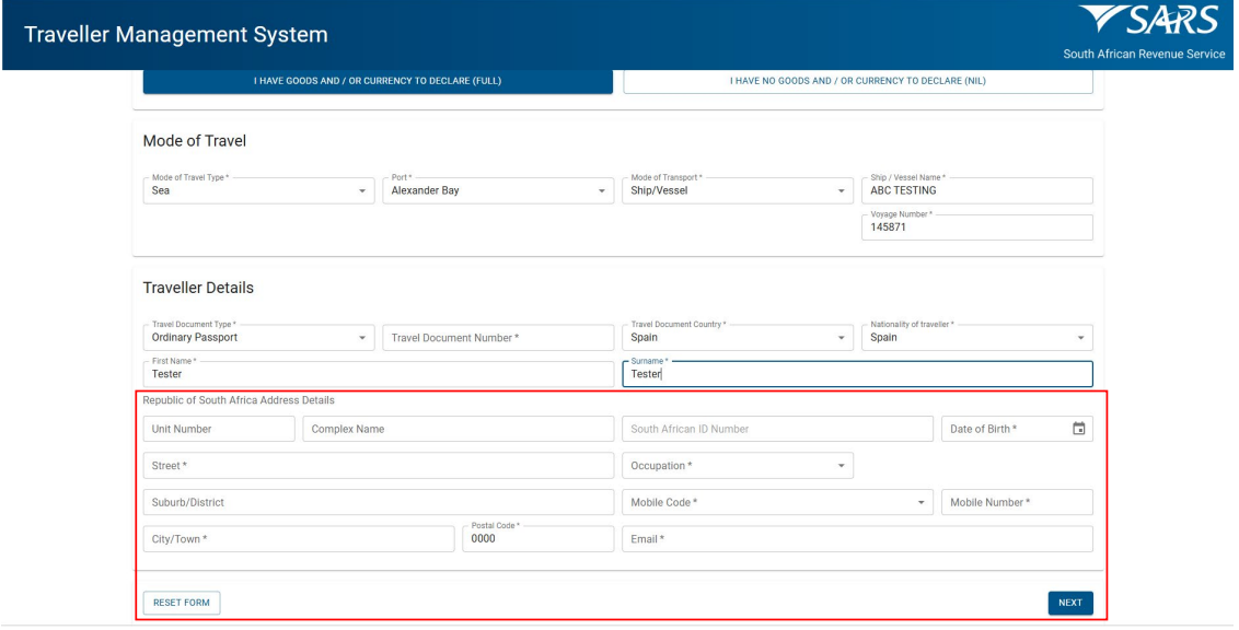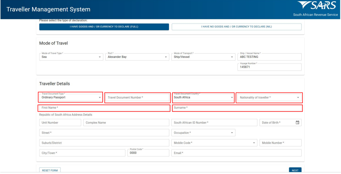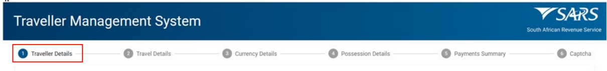 - The ‘Traveller Details’ section is where the traveller must capture personal and identification details.