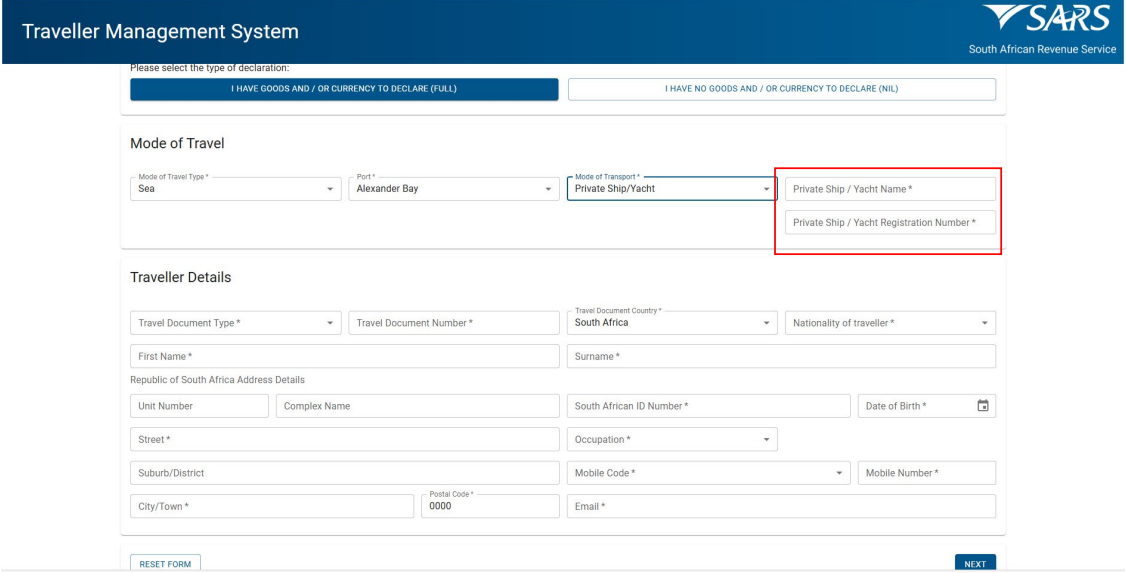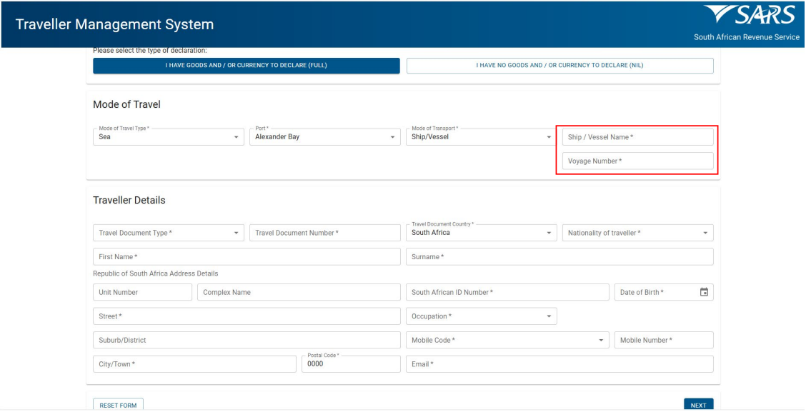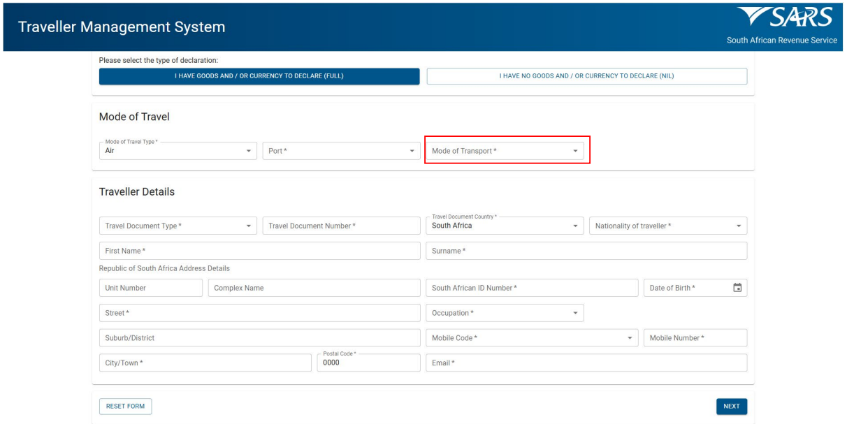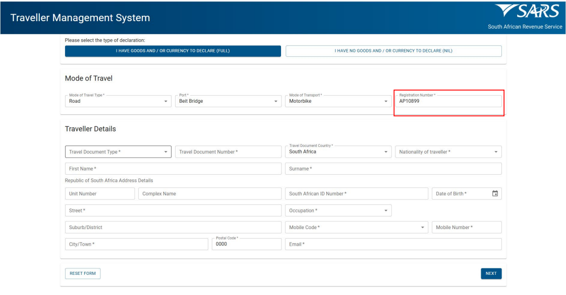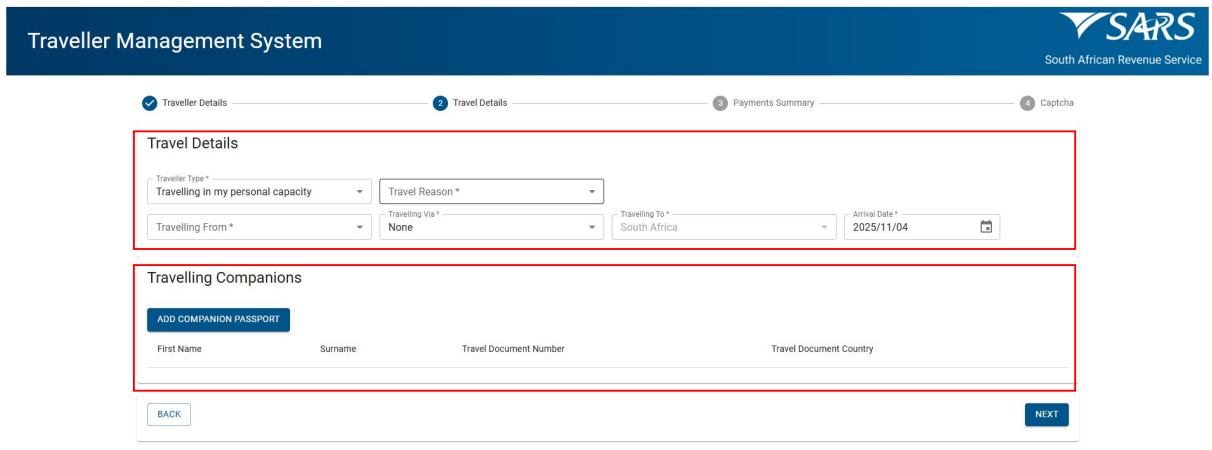 - The ‘Traveller Details’ section is where the traveller must capture personal and identification details.