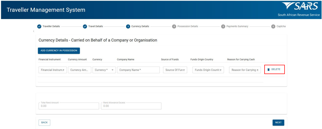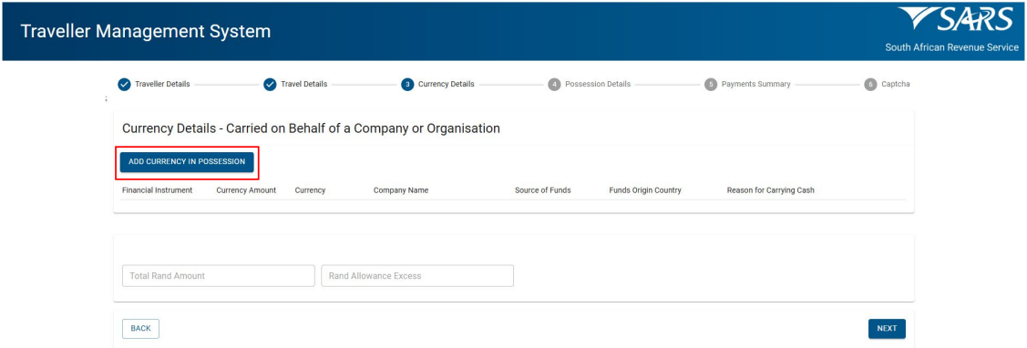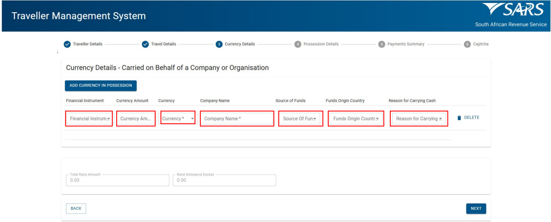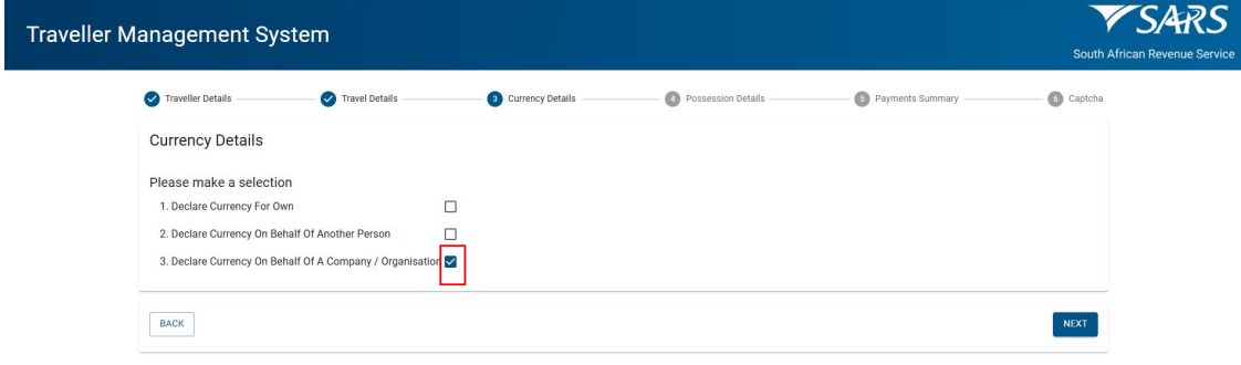 - Currencies Carried on Behalf of a Company / Organisation, if declared.
