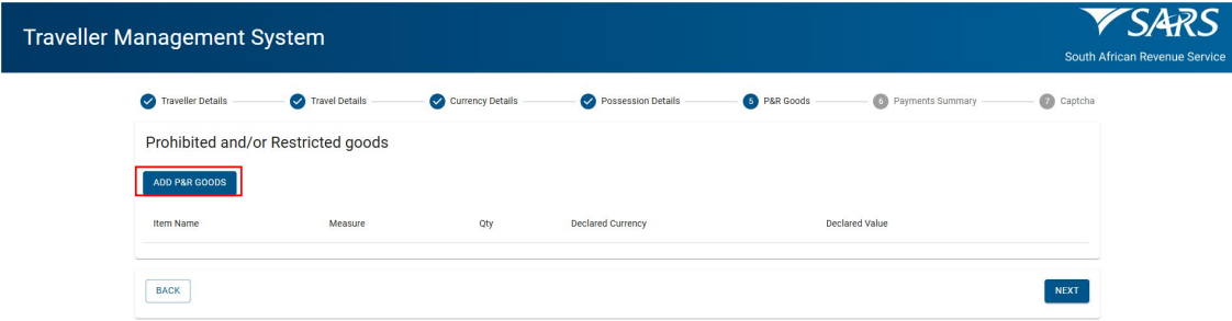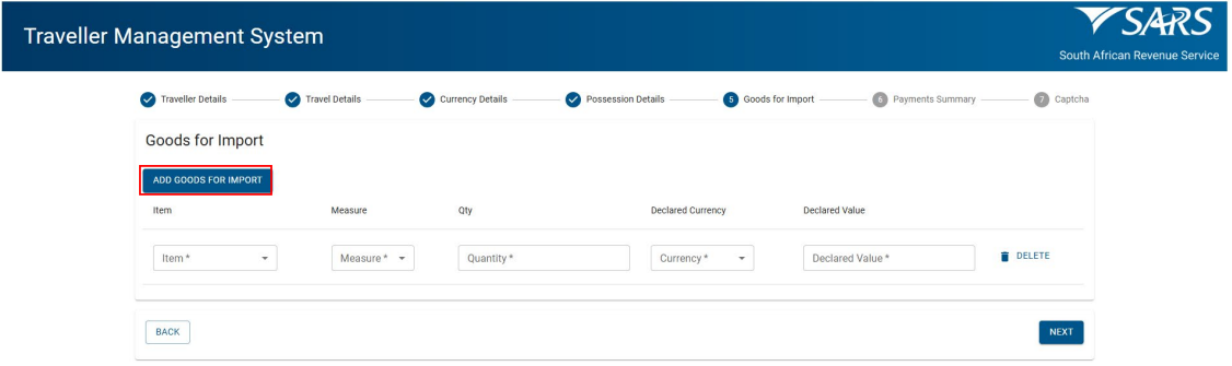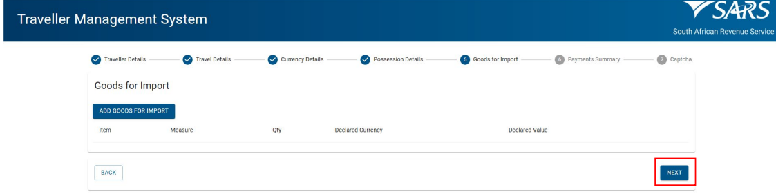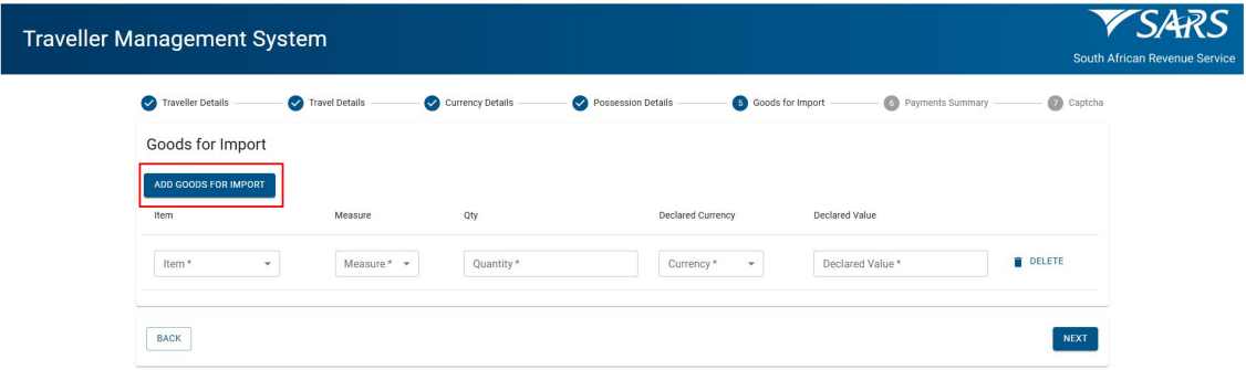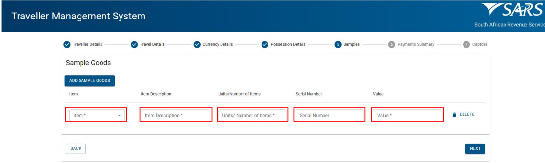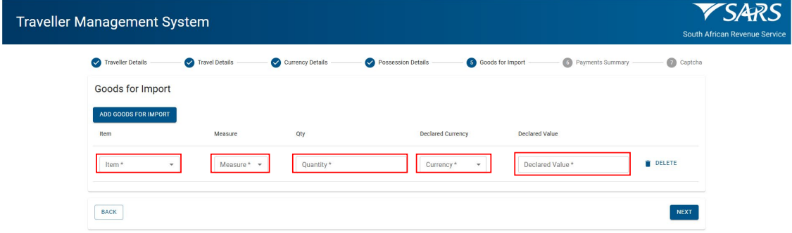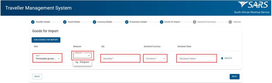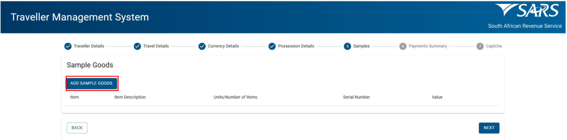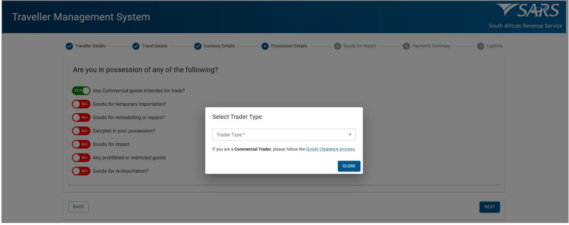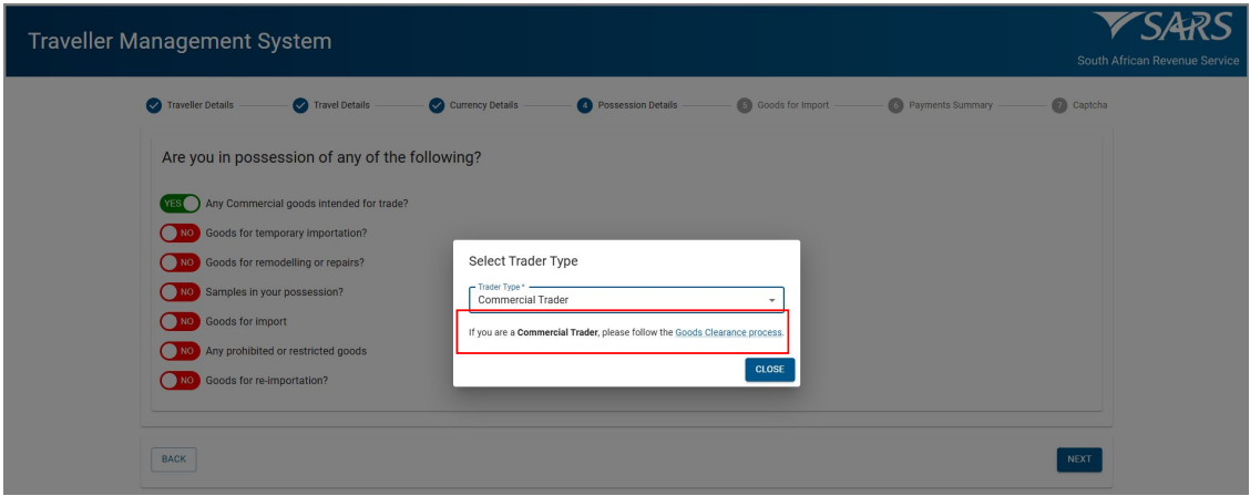 - The traveller clicks ‘Any commercial goods intended for trade’ radio button.