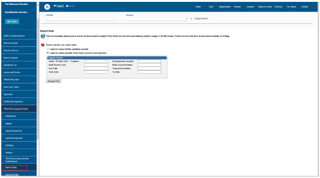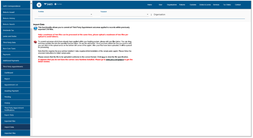 - Use eFiling to submit the file back to SARS after Third Party Appointment outcomes and/or payments are processed outside of eFiling.