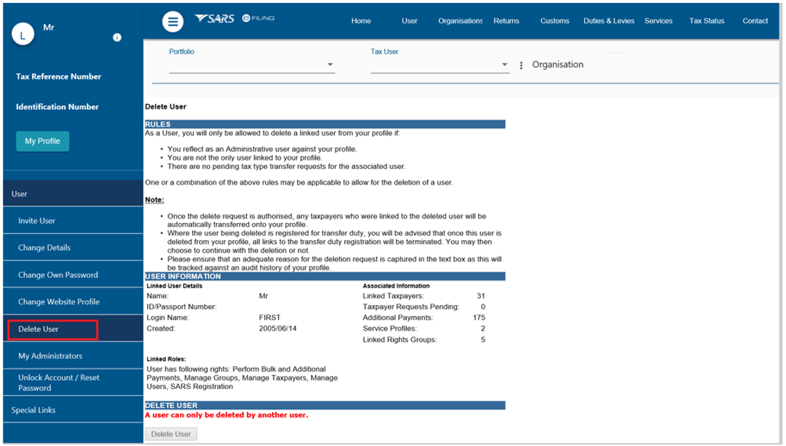 - Click on <Delete User>