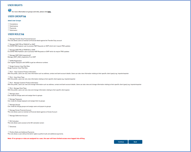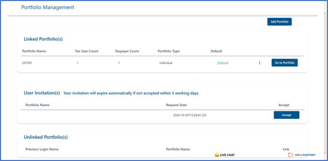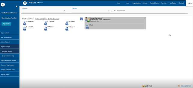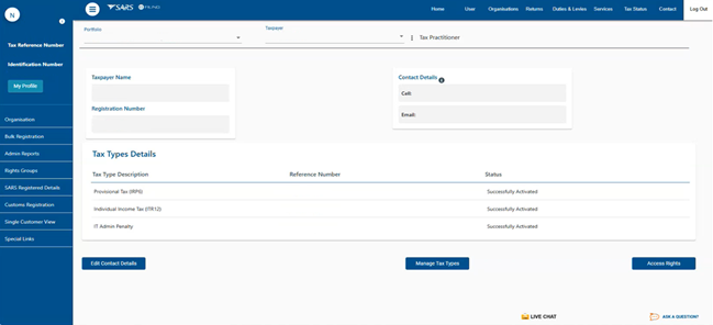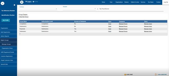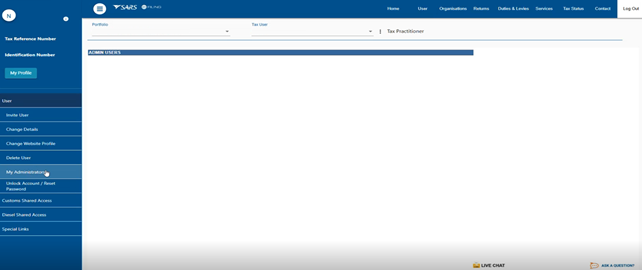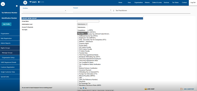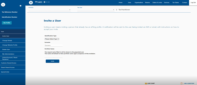 - In this step the Tax Practitioners link a user to their portfolio and set their access rights for the Tax Practitioner portfolio.