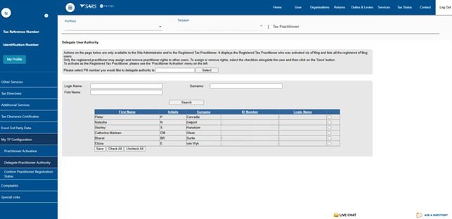 Tax Practitioners have the capability to associate users with their Tax Practitioner portfolio, thereby delegating appropriate authority. This process is especially beneficial when organisational staff members are required to perform eFiling tasks on behalf of the Tax Practitioner.
