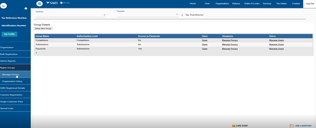 How to create a group for users and clients (Performed by Tax Practitioners)